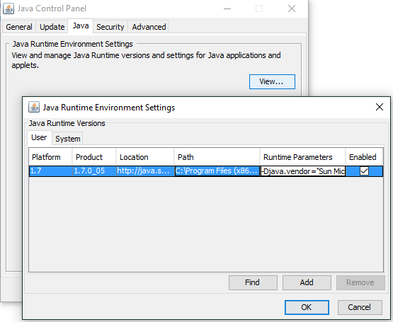 Após a instalação, vá ao Painel de Controle, selecione Programas –> JAVA e na tab “Java” do Painel de Controle Java, informe em “Runtime Parameters” esta instrução: -Djava.vendor="Sun Microsystems Inc.", clique em OK, reinicie a sua máquina e realize os testes necessários.